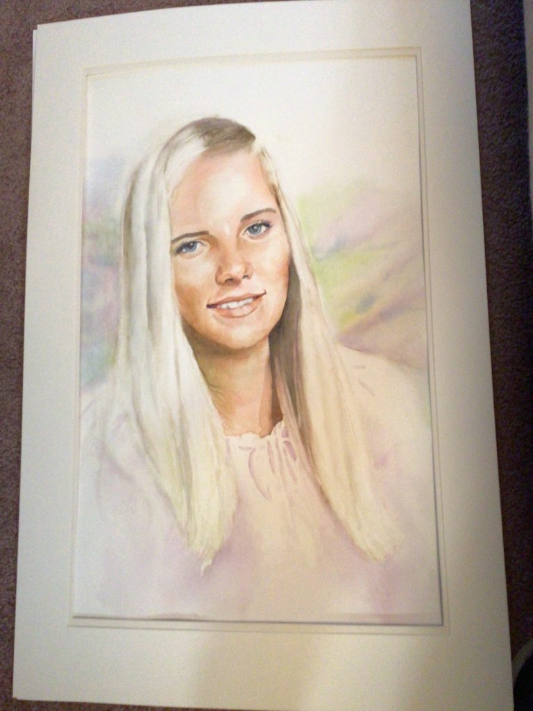 Kim was our first born. We were delighted with her and loved her so much but being young first time parents we made lots of mistakes. And being the first child she bore the brunt of most of those. In spite of that she turned out to be a beautiful, smart and independent creature. This painting was done from a photo that was taken when she was about 15 and was trying so hard to learn to fly on her own – hence the title, “Emerging Butterfly”